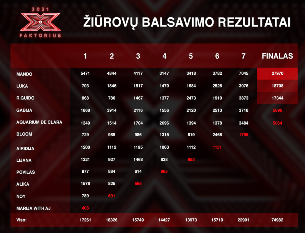 Superfinale „Mando“ taip pat sulaukė didžiulio palaikymo. Už duetą balsuota 27970 kartų. Už antroje vietoje likusią Lukreciją Vasiliauskaitę-Luką balsuota 18708 kartus. Trečią vietą užėmęs reperis Gvidas Ropė-R.Guido sulaukė 17344 balsų. Už Gabiją Aleknavičiūtę balsuota 5896 kartus, o „Aquarium de Clara“ – 5064 kartus.