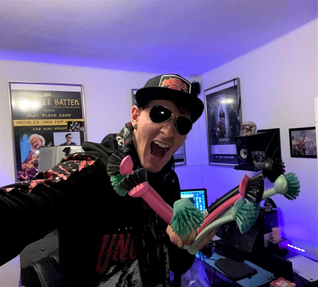 Prieš vieną iš koncertų nusipirkau šūsnį šepečių ir koncerte mėčiau juos į minią. Juokingiausia, kad vienas rimtas metalo gerbėjas atėjo prie manęs po koncerto sugavęs vieną iš rožinių šepečių ir paprašė jį pasirašyti. Jis buvo labai laimingas, o aš pirmą kartą padėjau parašą ant virtuvės šepečio.